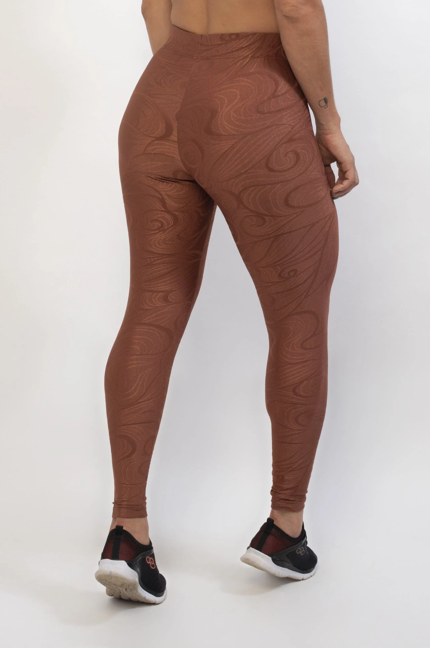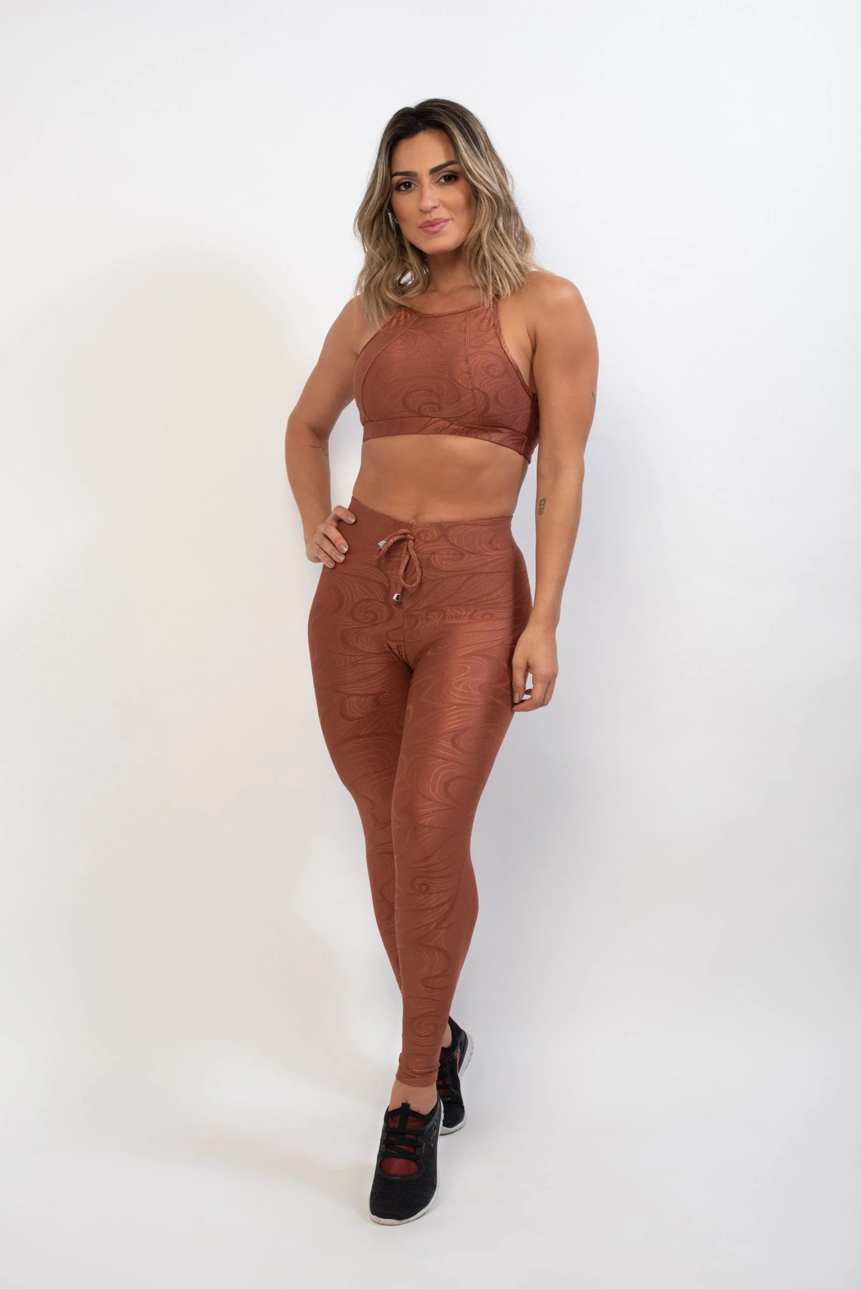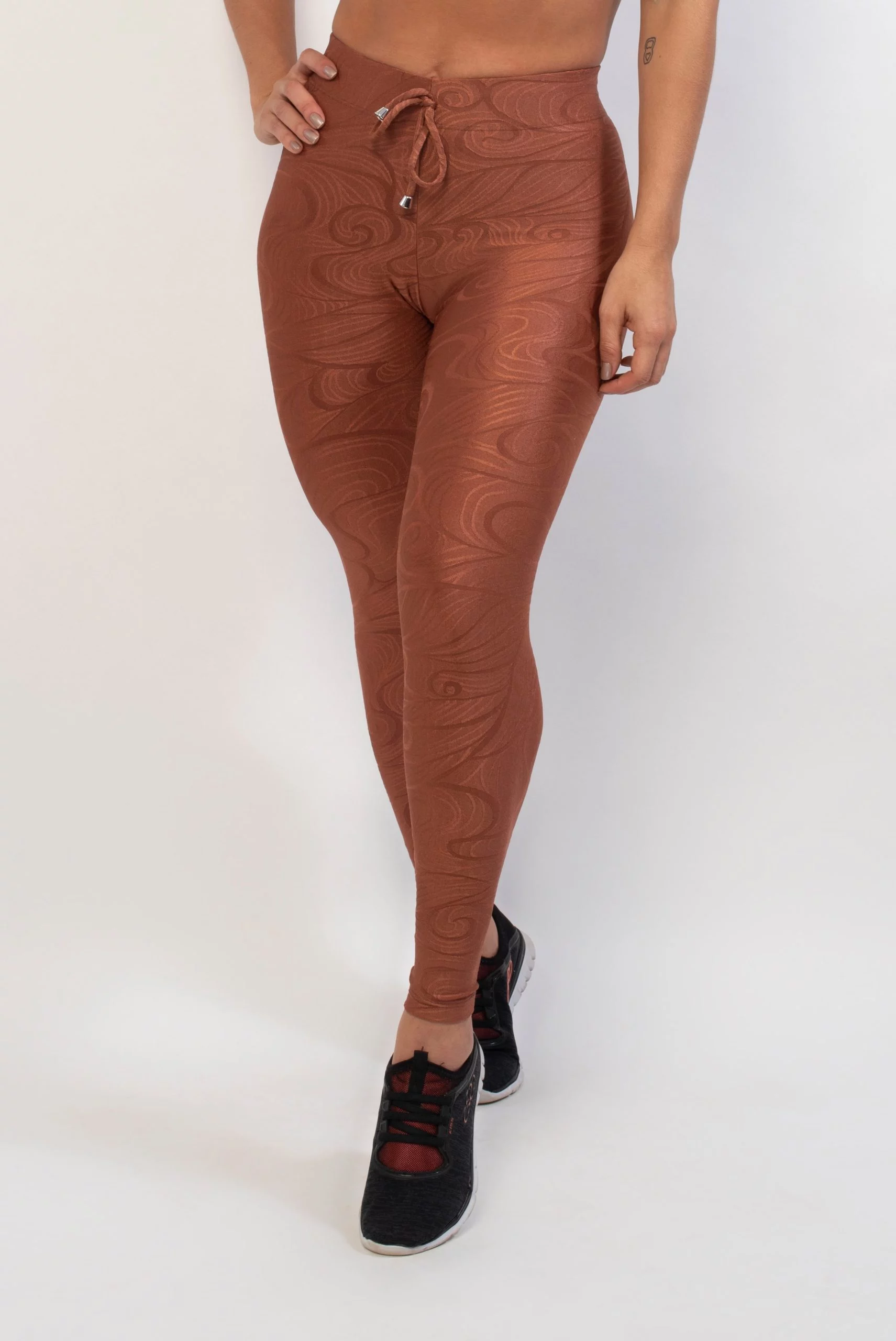 Calça produzida em tecido de ketten jacquard com um alto percentual de elastano, com a principal característica de remodelar a silhueta. O desenho cria um relevo brilhante, equilibrando desempenho nas atividades e lindo efeito estético. Além disso leva um elástico embutido na cintura, para ficar uma peça continua, e pra finalizar o cadarço que confere o charme final.