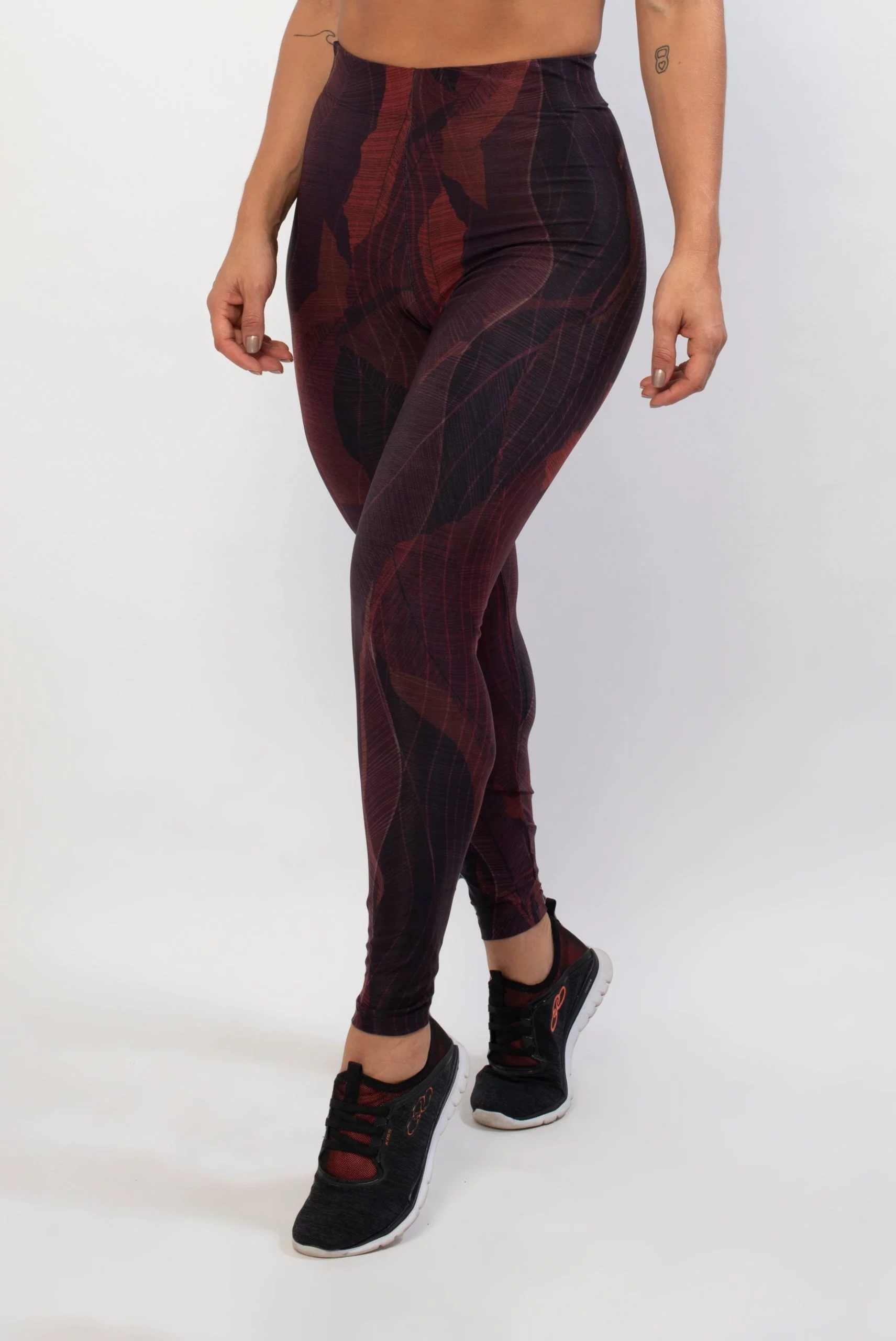 Legging Wish tem o avesso com tecido cinza mescla, o que auxilia ainda mais no quesito zero transparência, com estampa digital, e maior compressão. Tem um toque gelado para uma sensação de frescor na pele. Outro diferencial é na sua modelagem, ela é uma peça inteira, com um elástico embutido na contratura proporcionando ainda mais sustentação.