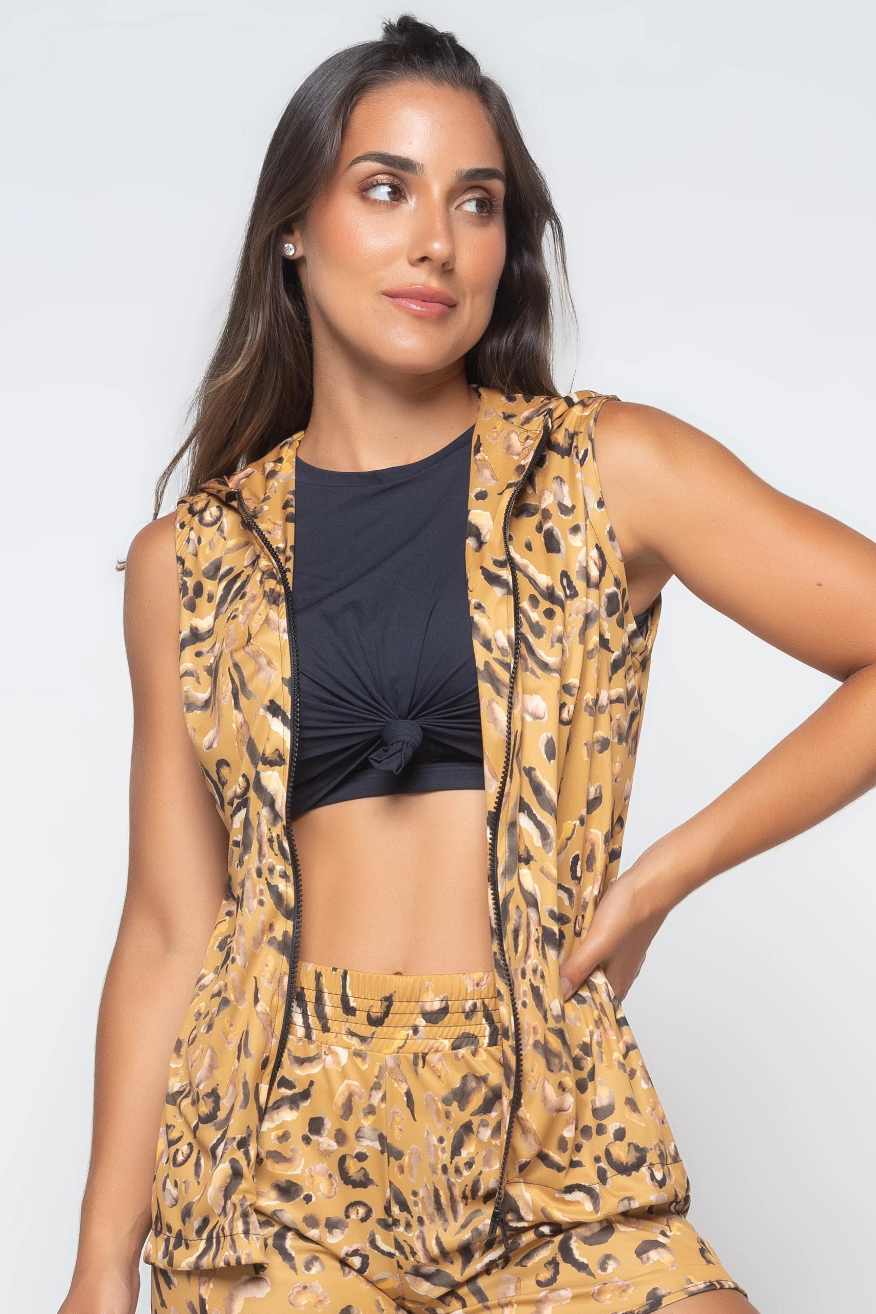 Colete Malawi com abertura frontal de zíper trazendo muita informação de moda, unindo conforto e estilo. Seu tecido tem toque macio com ótimo caindo, e sua estampa é digital ecológica – reduzindo em 90% o consumo de água e em 30% o gasto energético. Ideal para as atividades físicas de baixo a alto impacto e também para o dia a dia.