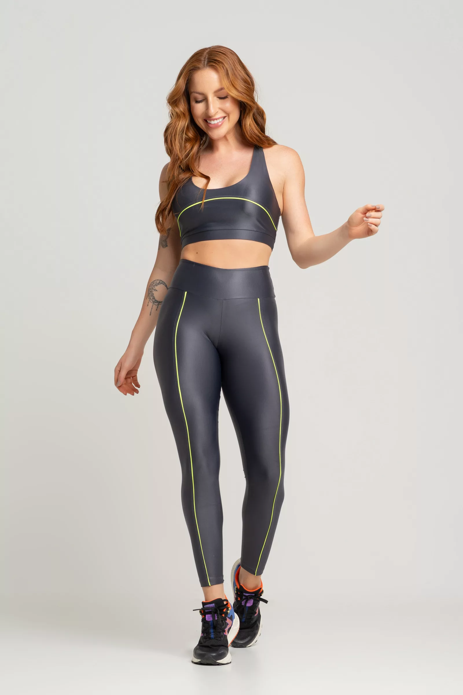 A família Neon Vibes possui em seus recortes detalhes em Neon, formando uma harmonização de cor nas peças. Os modelos possuem alta elasticidade, superfície brilhante perolada e conforto térmico. Com compressão firme, ajuda na redução do cansaço muscular.