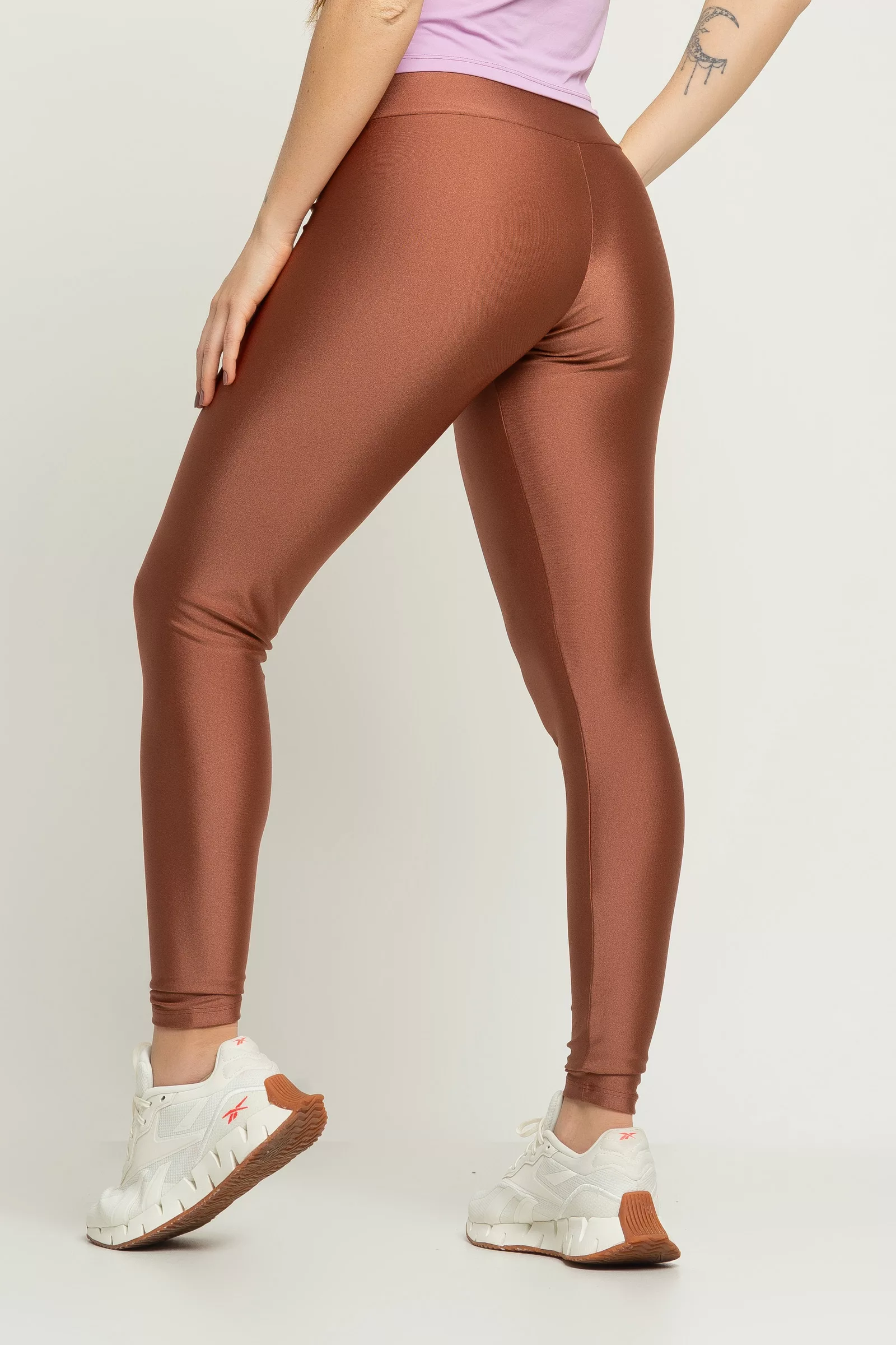 Legging confortável, confeccionada em tecido com compressão e leve brilho. Modelagem clássica com cós anatômico que encaixa perfeitamente no corpo, ideal para utilizar nos treinos e também em combinações de looks casuais.