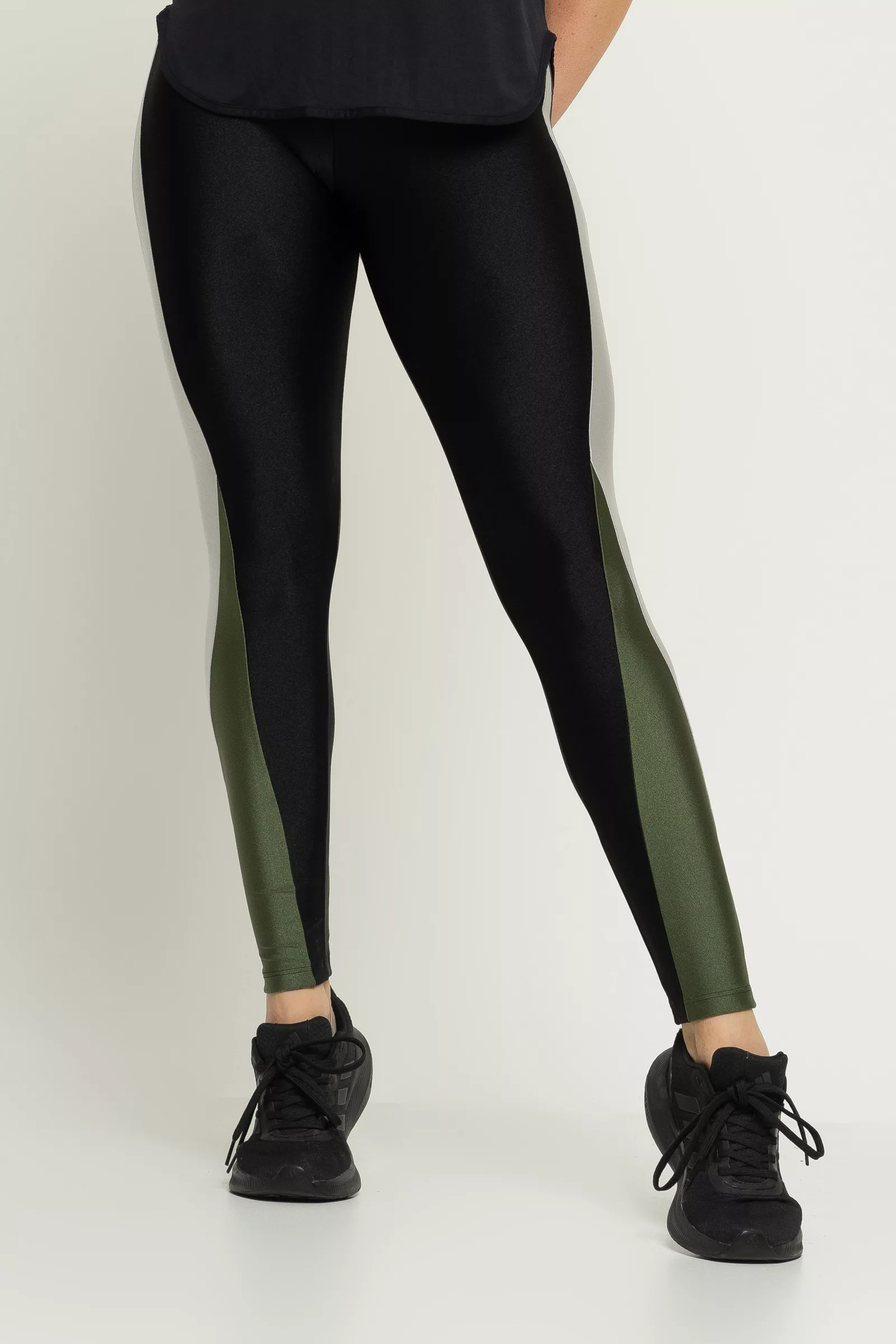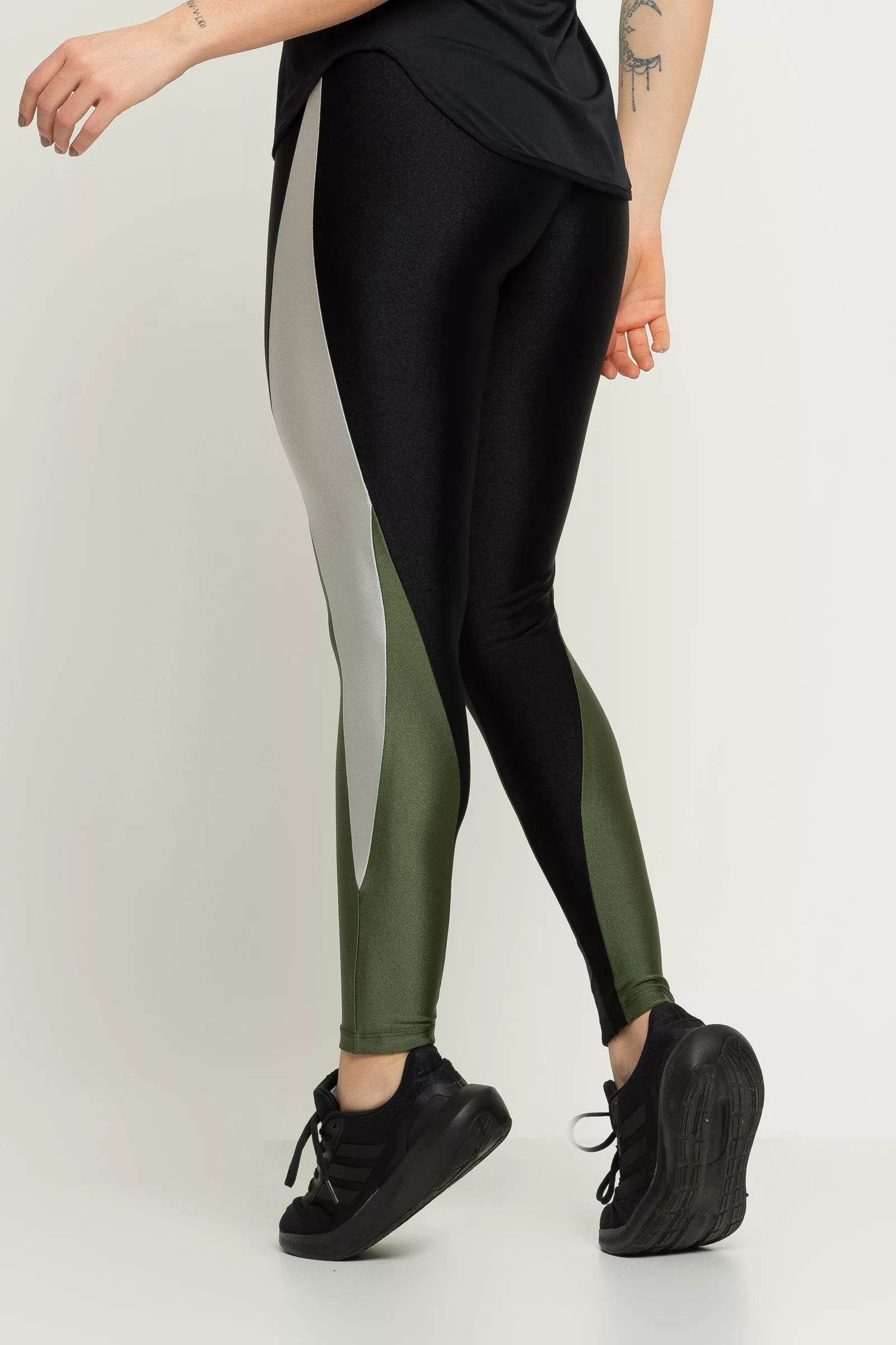 A Legging Three apresenta um design moderno com recortes em cores contrastantes, além de possuir um cós duplo e anatômico para proporcionar conforto durante o uso. Feita com tecido de compressão média, a legging oferece brilho e elasticidade, juntamente com um toque seco e proteção UV. É indicada para uso geral, sendo adequada para atividades esportivas e também para o dia a dia.