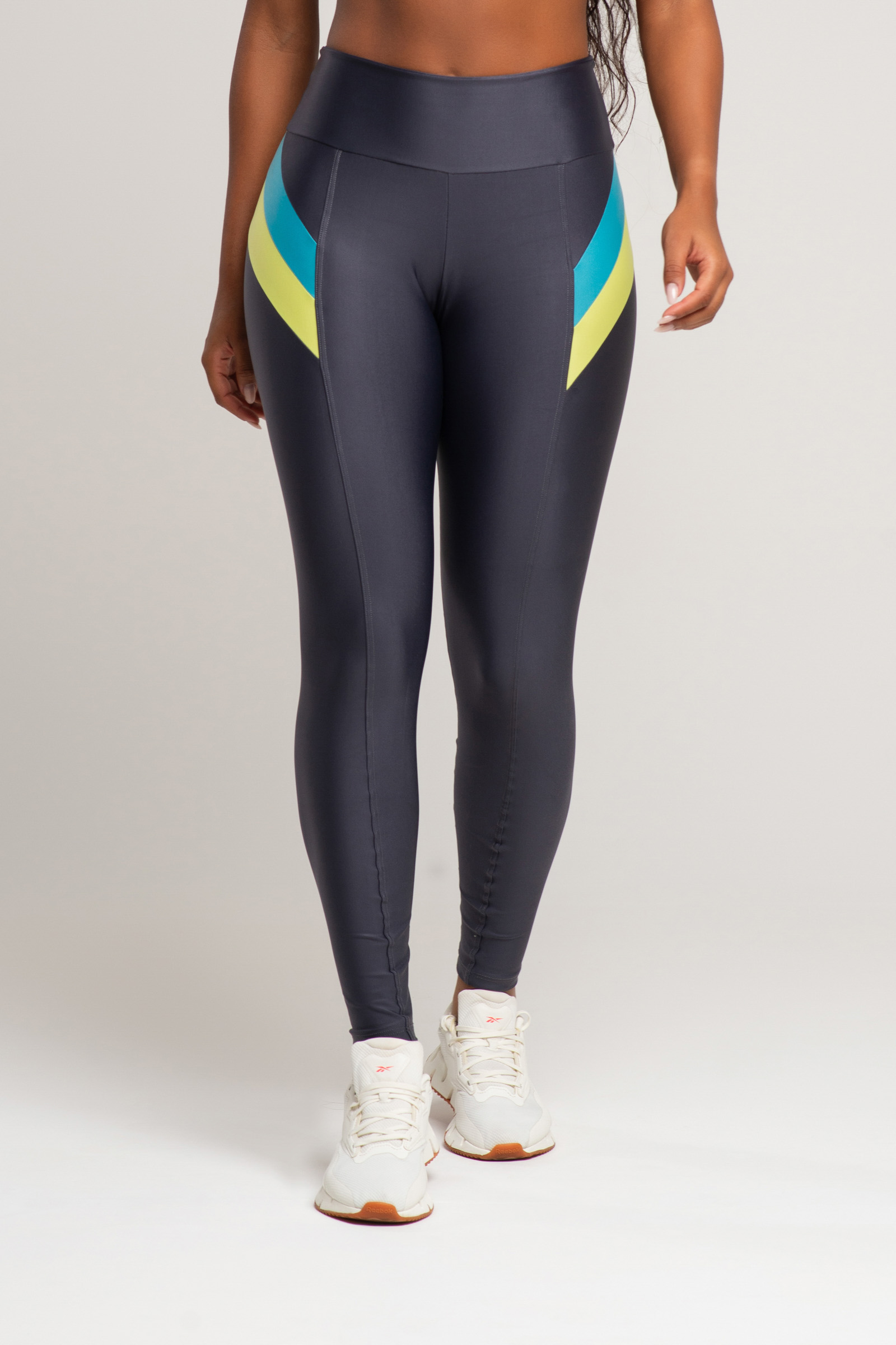Legging Color Block – Cinza com Amarelo