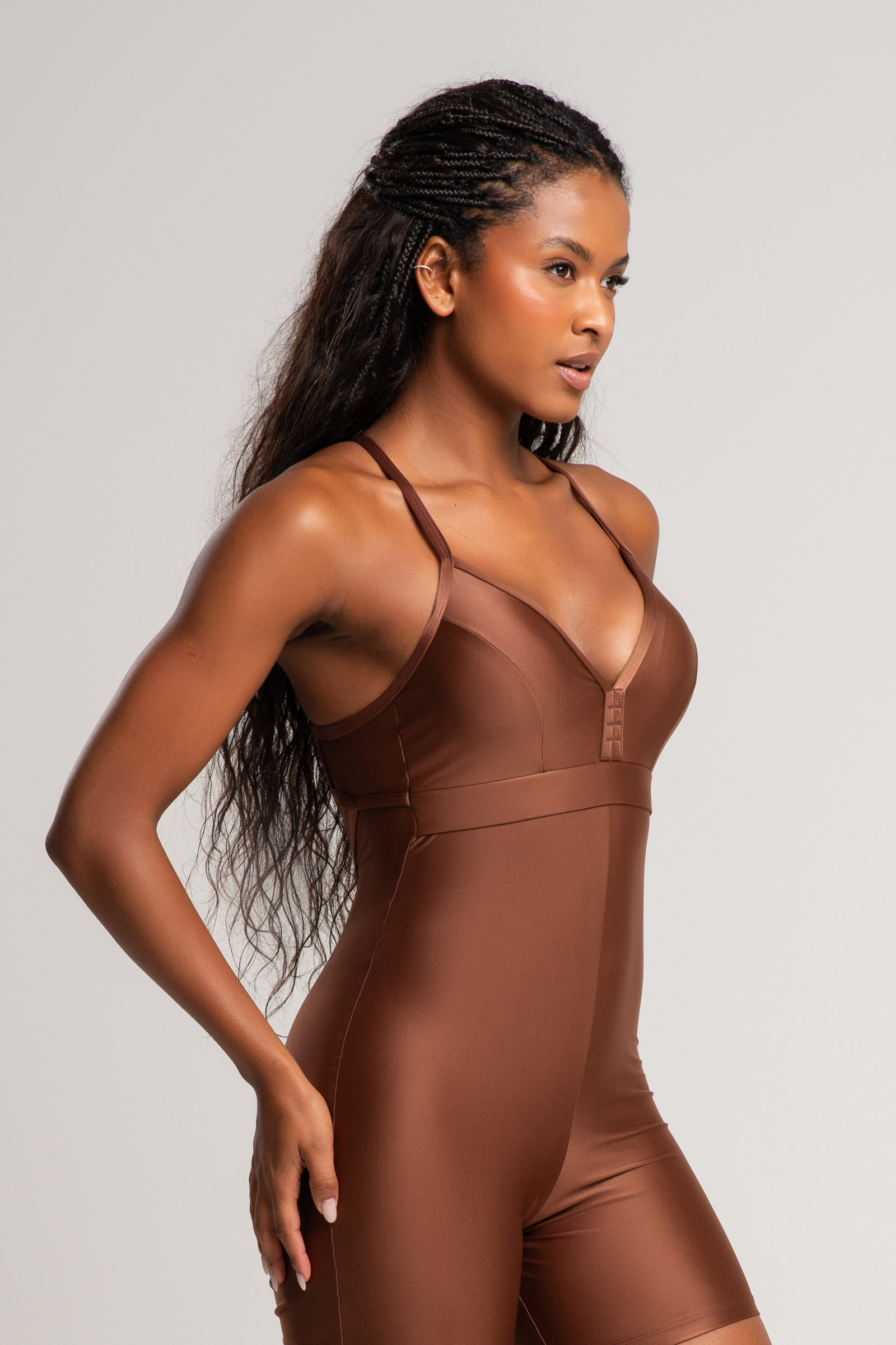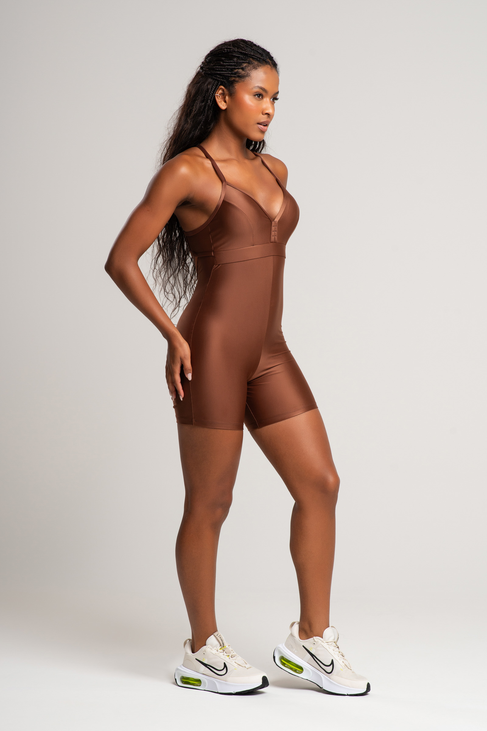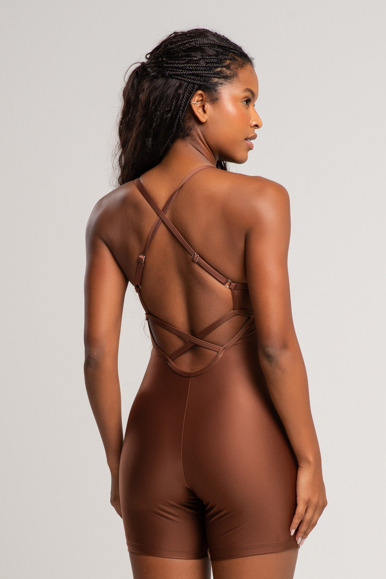 O Macaquinho Intense conta também com um amplo decote nas costas para ventilação e respiração da pele, possui alças cruzadas e é confeccionado com tecido de textura refinada, sendo a escolha perfeita para atividades que exigem maior movimentação.