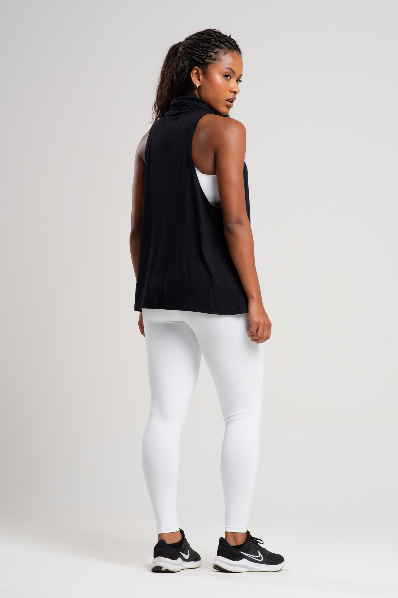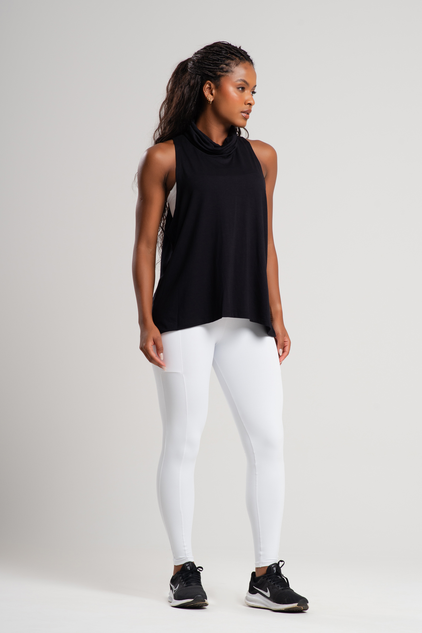 A Regata Supreme é a escolha perfeita para quem busca aliar elegância, conforto e sustentabilidade. Com um design moderno, ela traz a sofisticação de uma gola alta combinada com a praticidade de uma cava profunda, que permite liberdade de movimento e um visual despojado. Seu comprimento alongado cobre quase toda a região do quadril, proporcionando mais segurança e versatilidade para diferentes ocasiões, seja nos treinos ou em looks casuais.