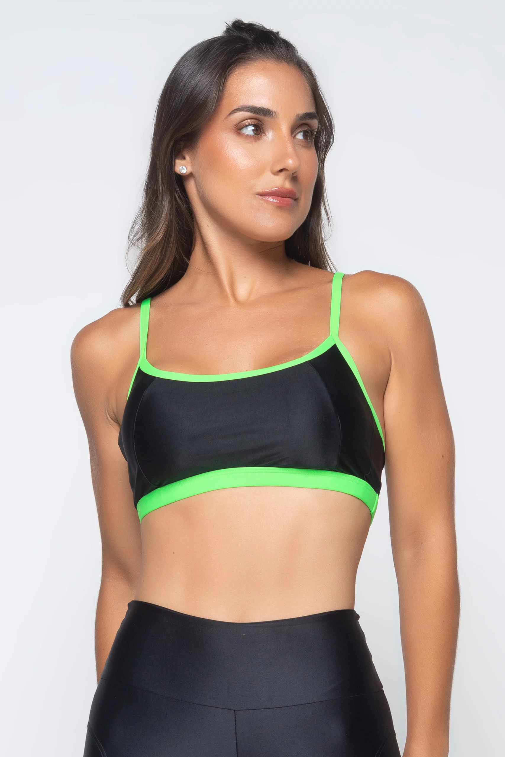 Atraia todos os olhares! Esqueça o pretinho básico e adicione um pouco de vida ao seu look com esse top super tendência. Com brilho que remete ao da seda e acabamento em neon, o top Color Block está na lista dos mais desejados. Compre agora mesmo e dê um upgrade no seu treino!