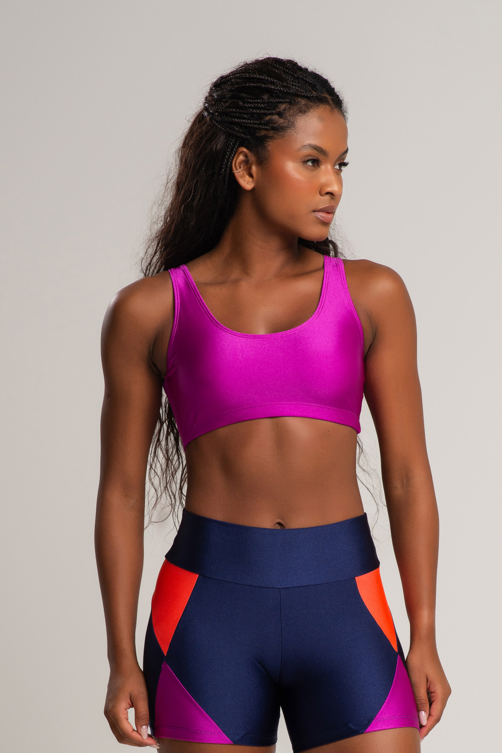 O Top Motion em tecido com leve brilho e boa compressão, com modelagem estilo regata, alças médias e com bojo removível. Modelo ideal para seu treino diário! Possui forro premium e sua composição garante ótimo conforto e sustentação.