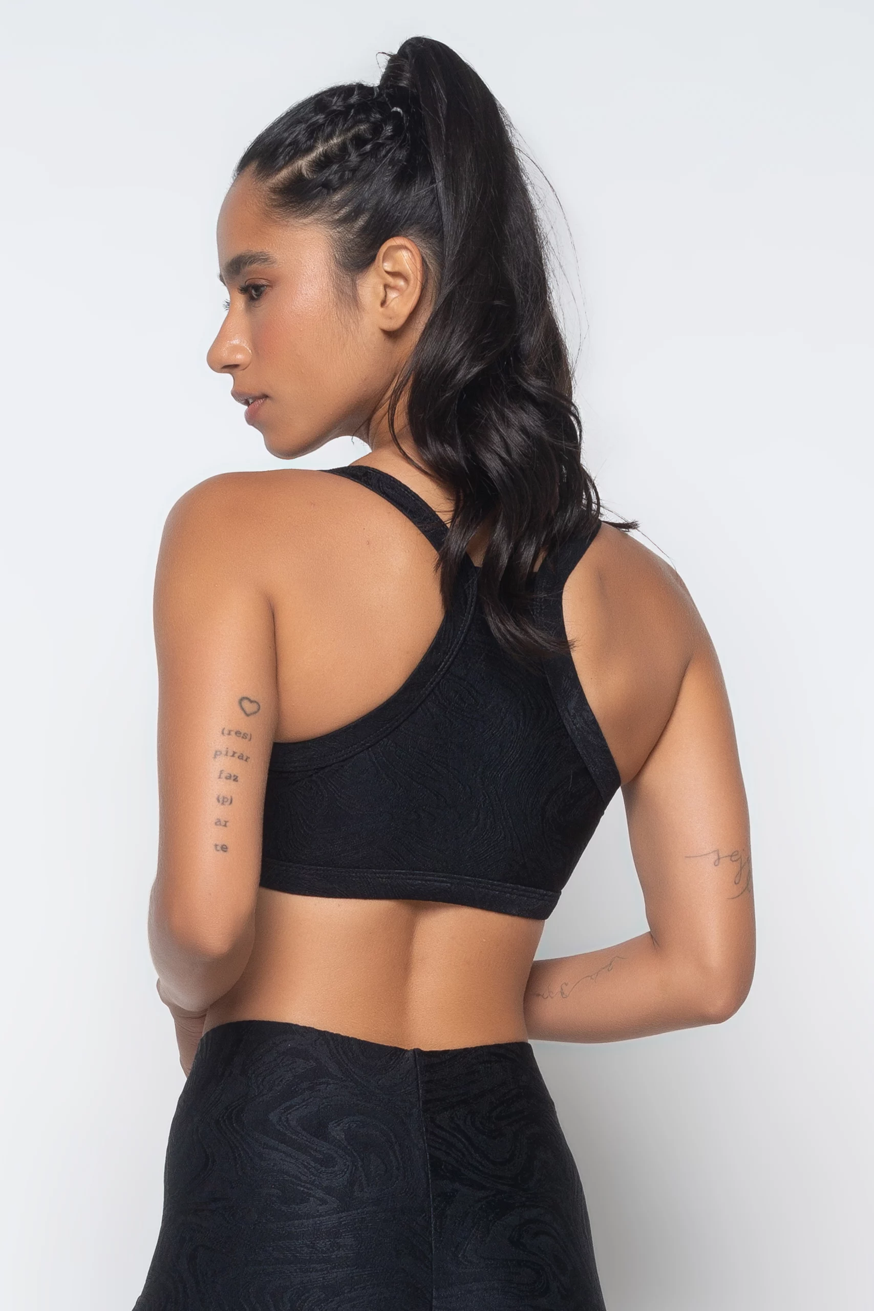 Para quem está procurando um top que seja delicado e resistente ao mesmo tempo, esse é o modelo perfeito. Confeccionado em tecido de poliamida com texturas com aspecto