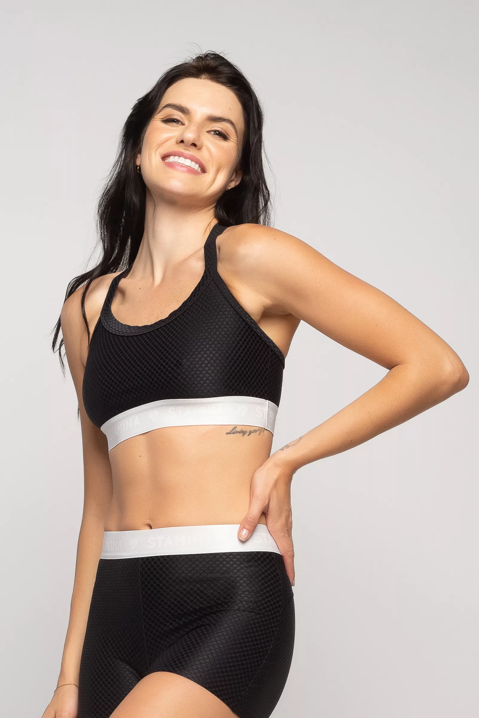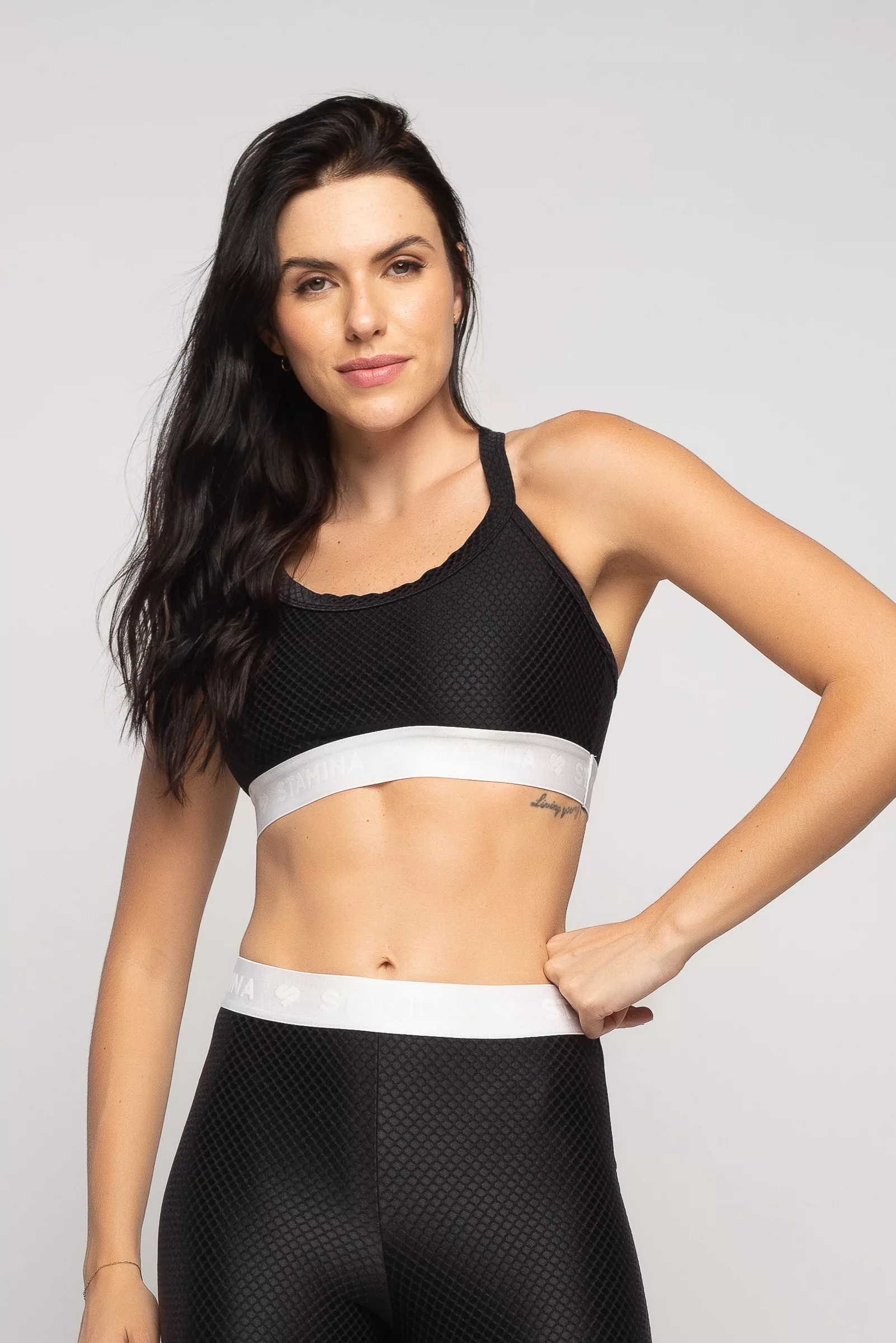 O Top Dallas é uma peça elegante e funcional, projetada para proporcionar suporte e estilo durante suas atividades físicas. Feito com tecido de poliamida de alta qualidade, possui um elástico em cor contrastante e a icônica logomania Stamina. Além disso, conta com forro premium, abertura para inserção de forro removível, alças médias e detalhes em elástico nas costas, garantindo conforto e versatilidade.