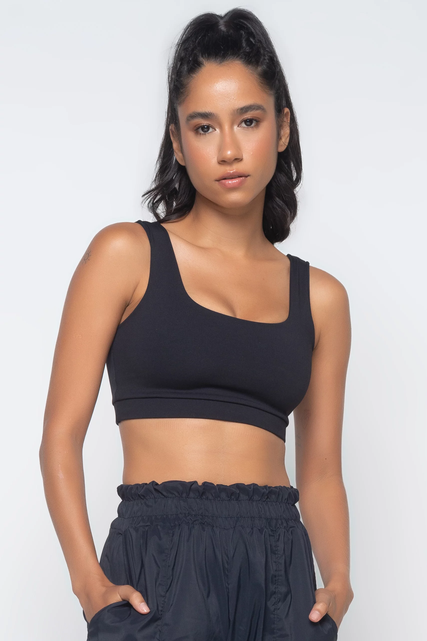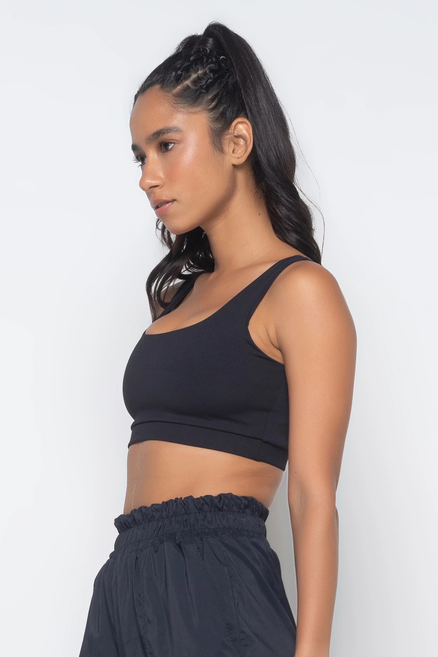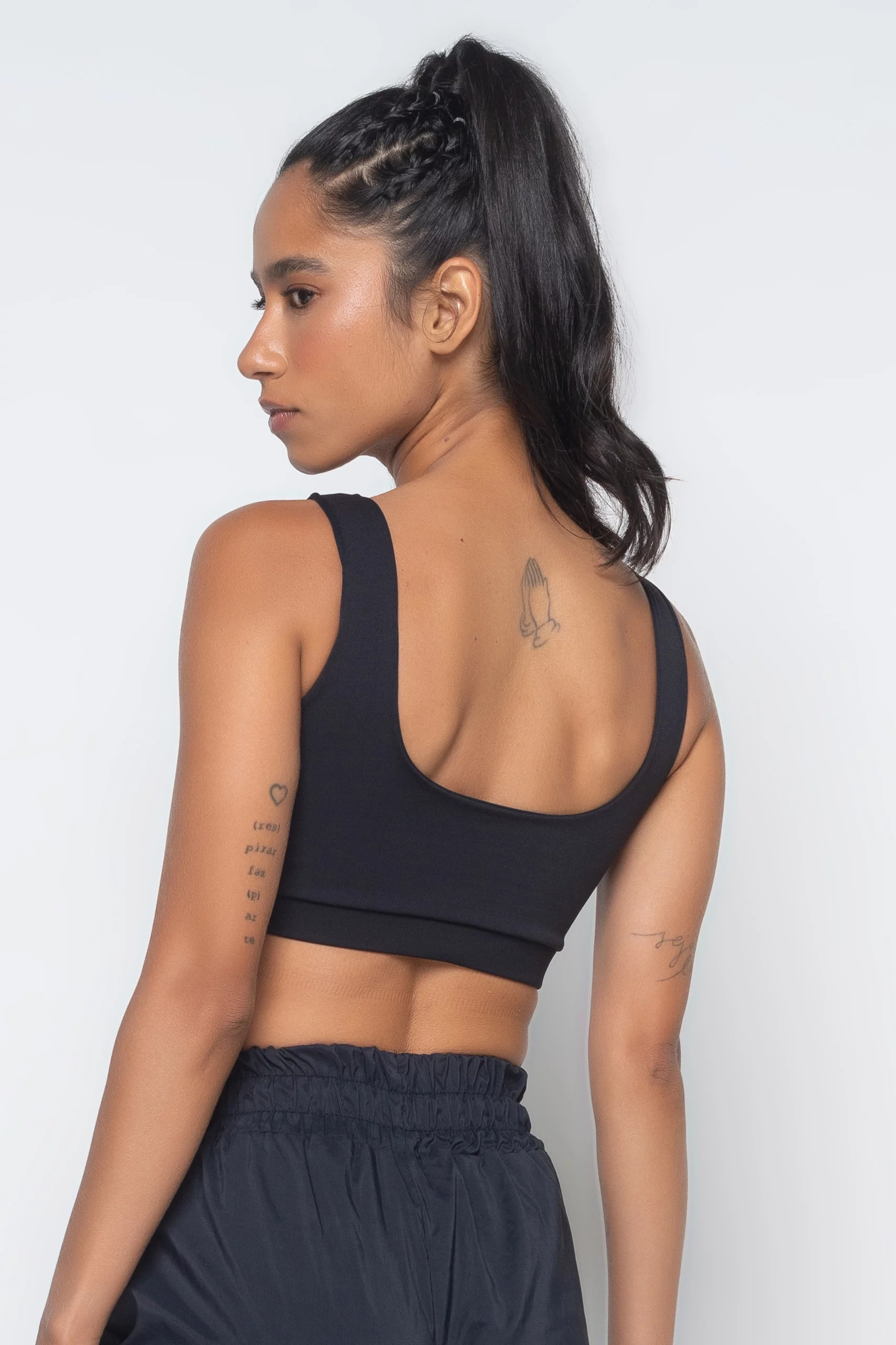 A modelagem do Top Regata Infinity é super versátil por poder ser utilizada no lugar do sutiã no dia a dia e durante as atividades físicas, bem como cropped para a composição de looks casuais.