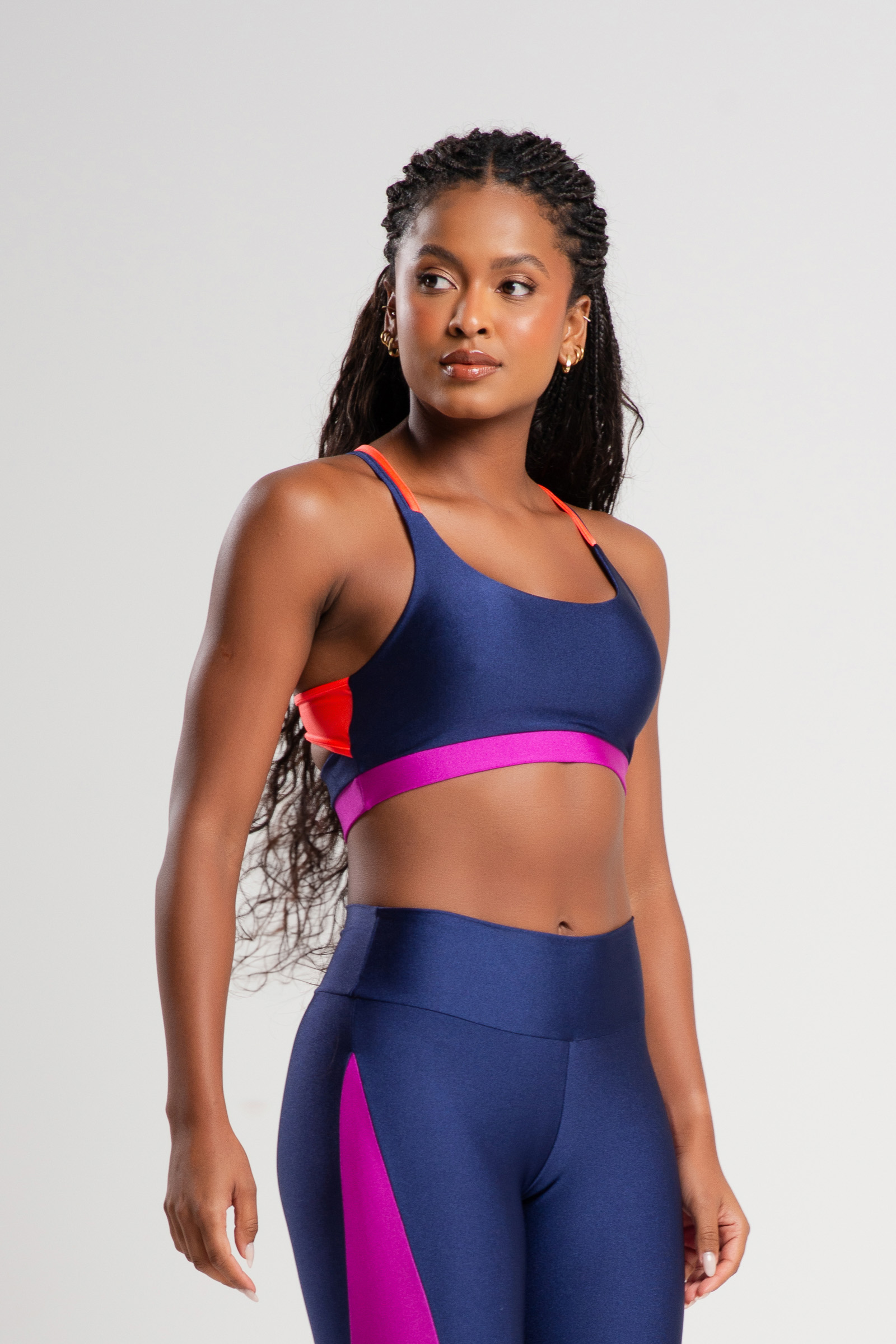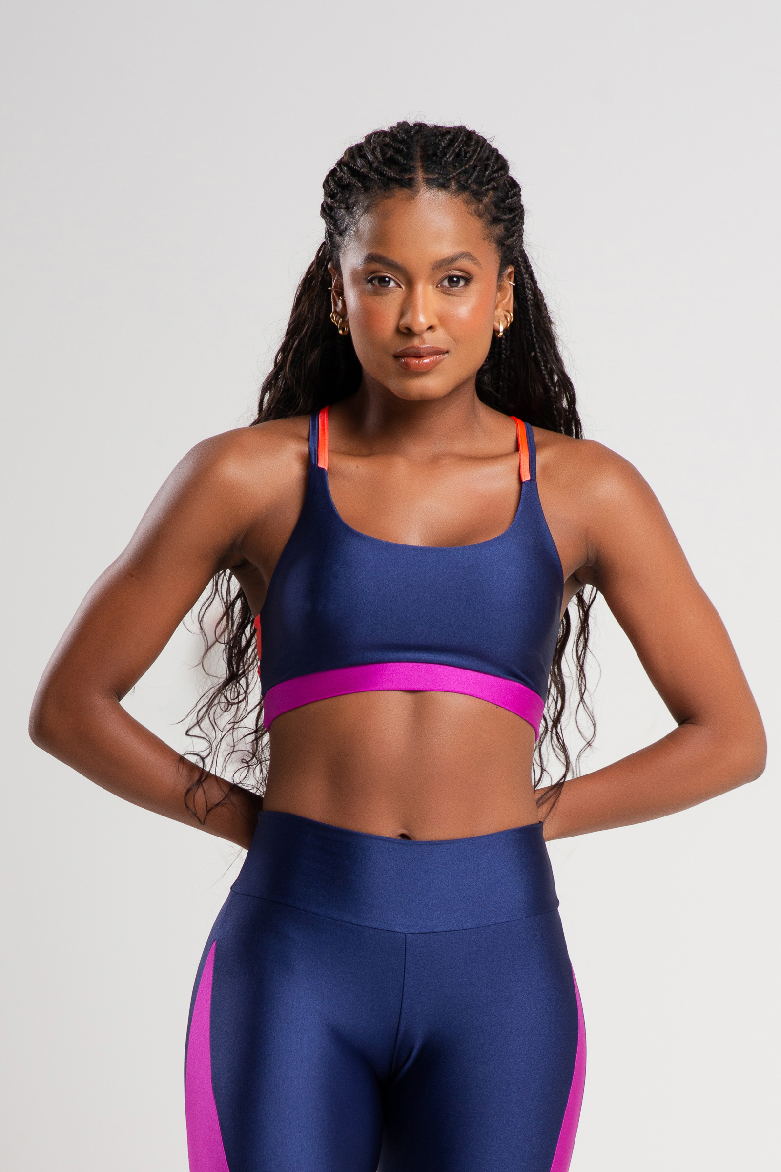 O top three de alças duplas é uma peça versátil e moderna, com bojo removível e forro premium para garantir conforto e suporte. Feito com tecido de compressão de média elasticidade, brilho e toque seco, o top também oferece proteção UV. Seus detalhes em cores contrastantes e costas duplas adicionam um toque de estilo, enquanto o cós com elástico embutido proporciona ajuste seguro.